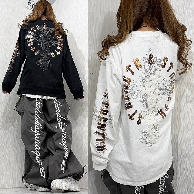 クロス刺繍&ワッペン 金箔 バクプリ&袖 ロンT
