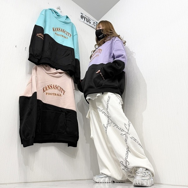 new コーデに合わせている スウェットパンツ→https://yugstyle.c2ec.com/items/128640951 タンク→ https://yugstyle.c2ec.com/items/40326375 ネックレス→https://yugstyle.c2ec.com/items/64814707 ☆―――☆ 商品 ☆―――☆ 配色切替でお色がオシャレで目を惹くパーカー☆ ダボっとおしゃれなストリートパーカー♪ Frontポケット付き⭐︎Frontフード部分がハイネック調のレイヤードデザインになっていて形もオシャレです⭐︎ 裏起毛であったかスウェット生地になります☆ オソロイコーデにもめちゃくちゃ可愛いです! ※インポート 男女OK!ユニセックス! ●サイズ・F(BIGシルエット)大きいサイズ2L3Lの方にもOK ●カラー・パープル・ピンク・ミント 丈71cm 身幅66cm 肩幅68cm 袖丈62cm 多少誤差はご了承下さい ●モデル●身長・158㎝ 沖縄県や離島にお住まいの方は こちらの商品ご購入の場合は、 ¥1590 の送料券を必ずお買い求め下さい。