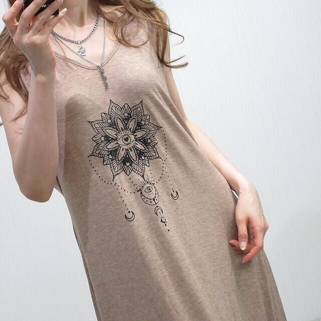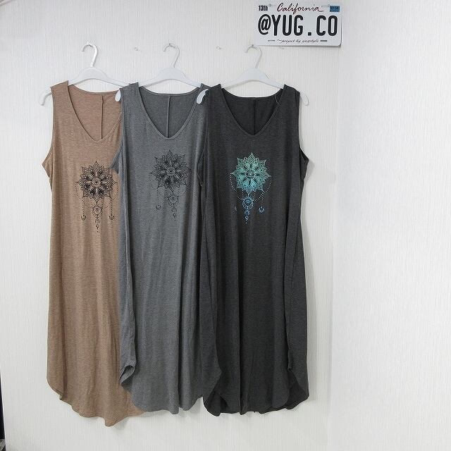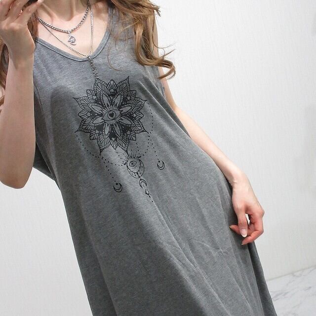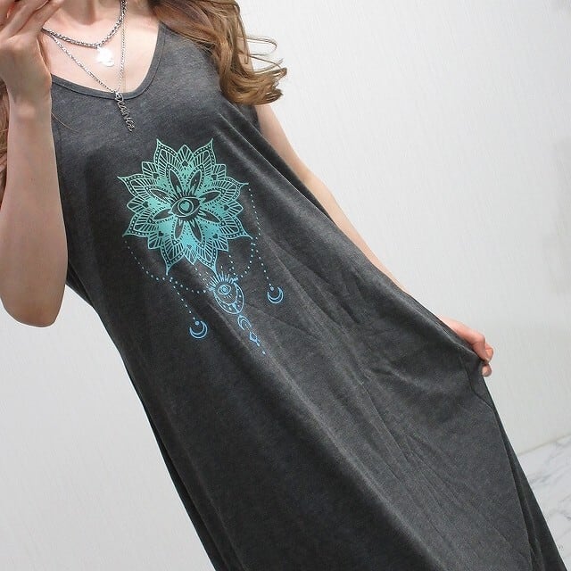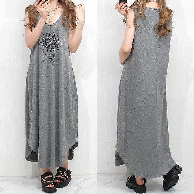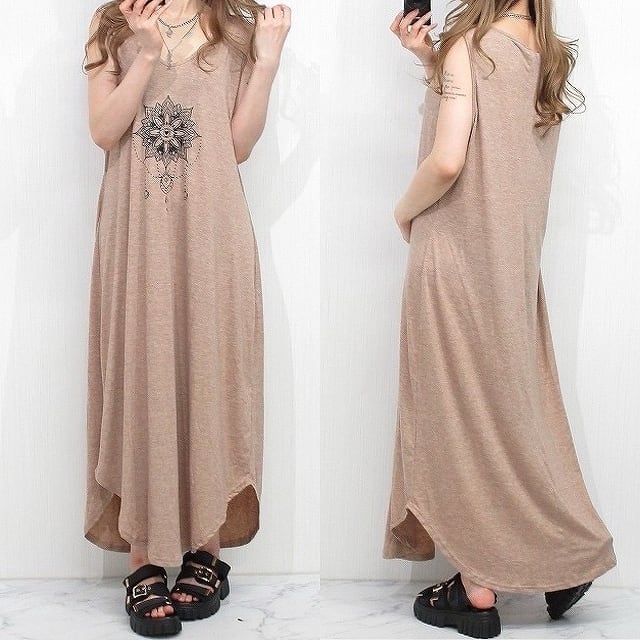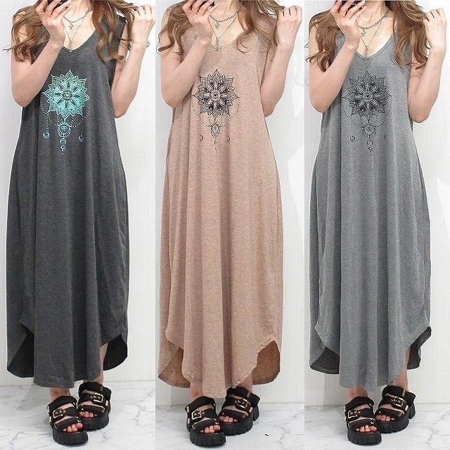 Frontエスニック柄プリントもオシャレなロングワンピ♪