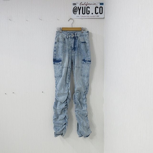 裾クシュクシュ Sideカーゴポケット付 スーパーストレッチ デニムスキニーパンツ インポートtt