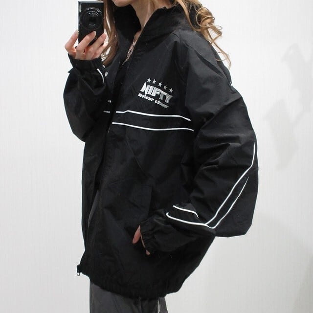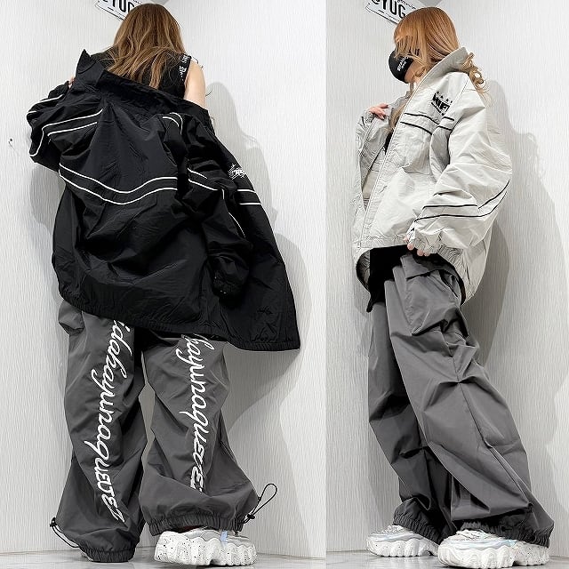 ライン ロゴ刺繍 マウンテンジャケット ハイネックZIP トラックジャケット ブルゾン オーバーサイズ