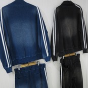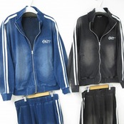 【SET UP】上下セット ロゴ刺繍 デニムジャケット&デニムパンツ Sideライン