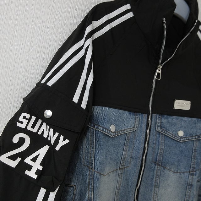 デニム切替 ドッキング 袖ポケット Noライン ブルゾン ジャケット