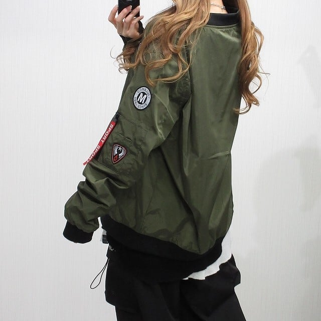 刺繍ワッペン 袖配色切替 シャカシャカ スタジャン ブルゾン MA1