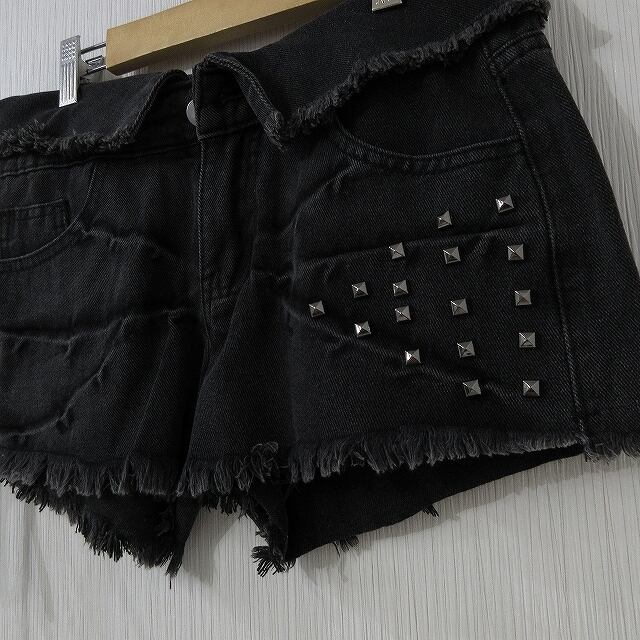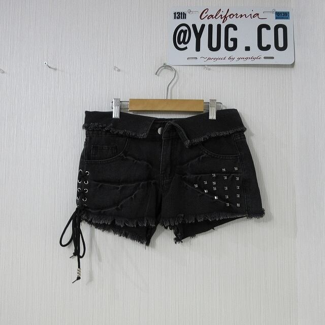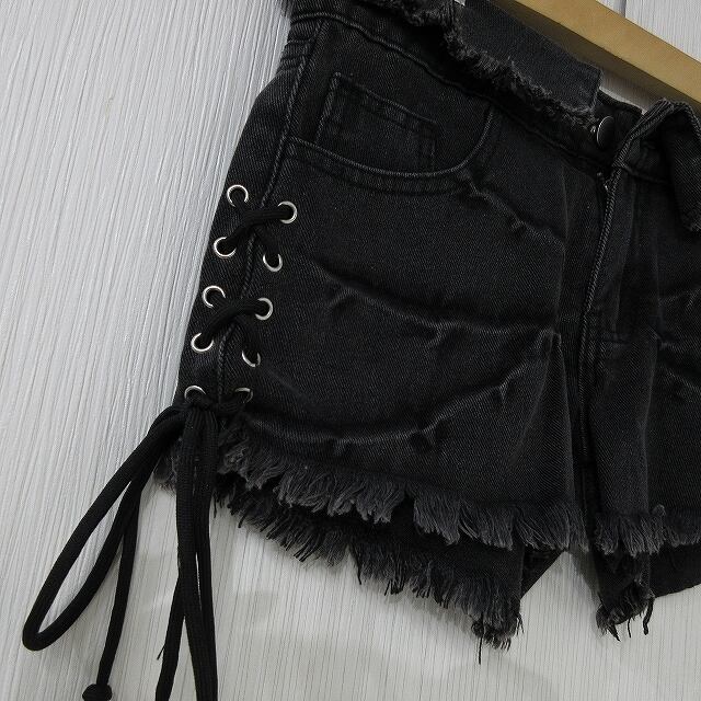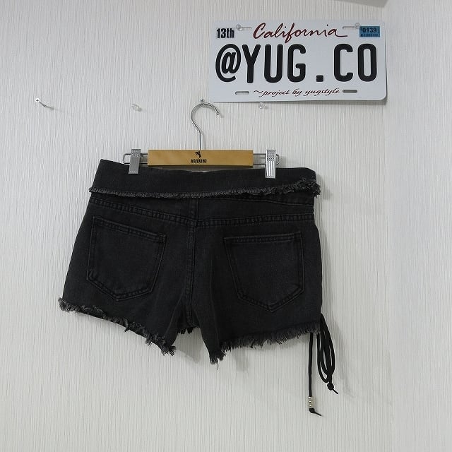 Side編み上げ ウエスト折返し 美脚&小尻効果◎ デニムショーパン ショートパンツ インポート