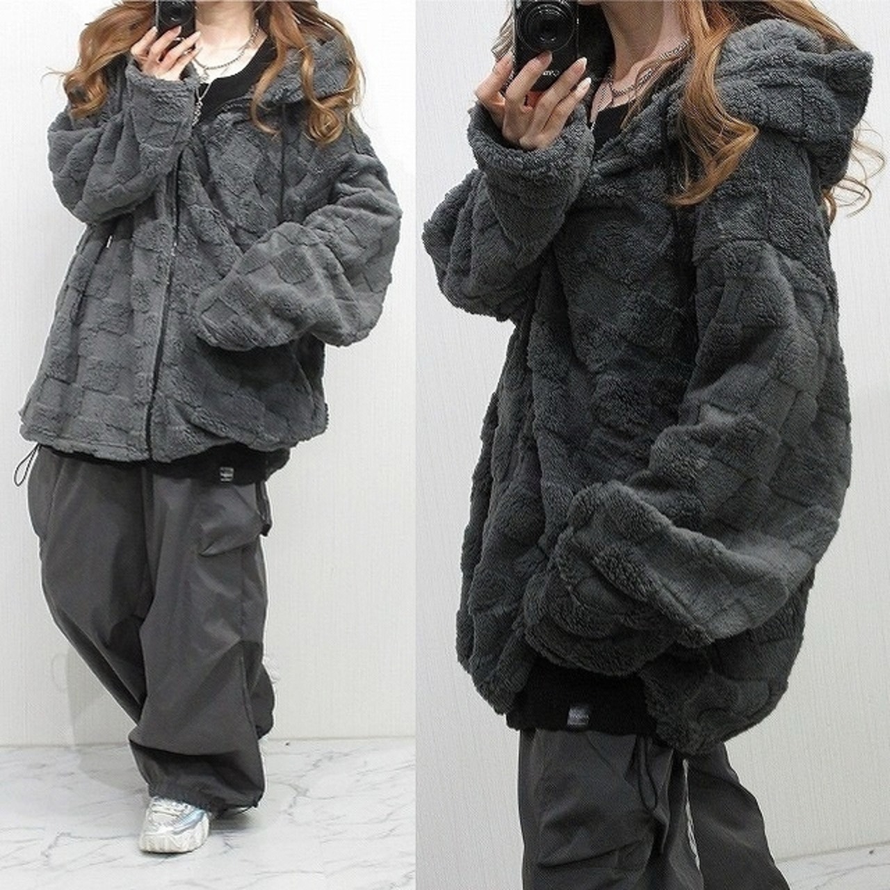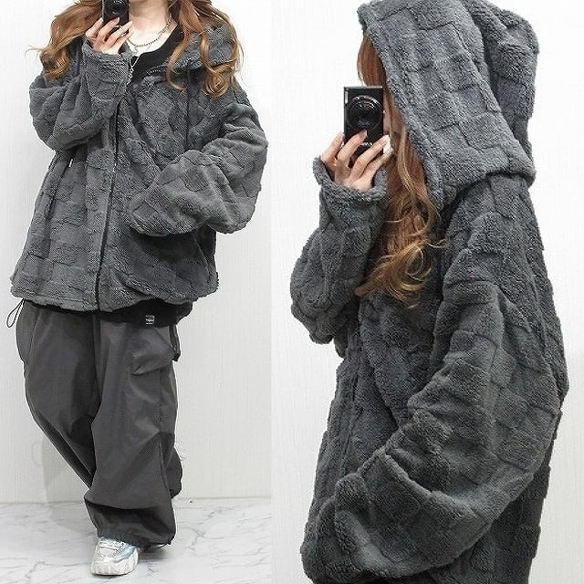 ダイス柄 エンボス シャギーボア ZIPパーカー