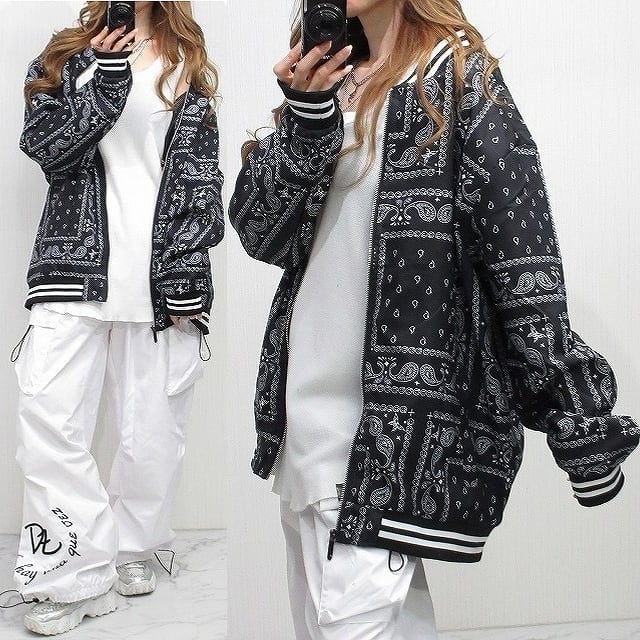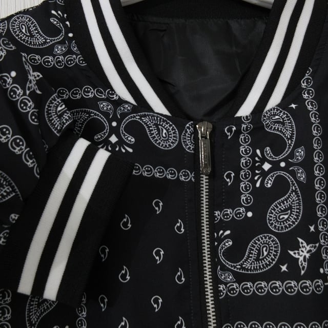 ペイズリー柄 リブライン切替 スタジャン ブルゾン