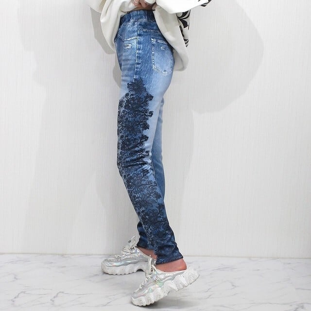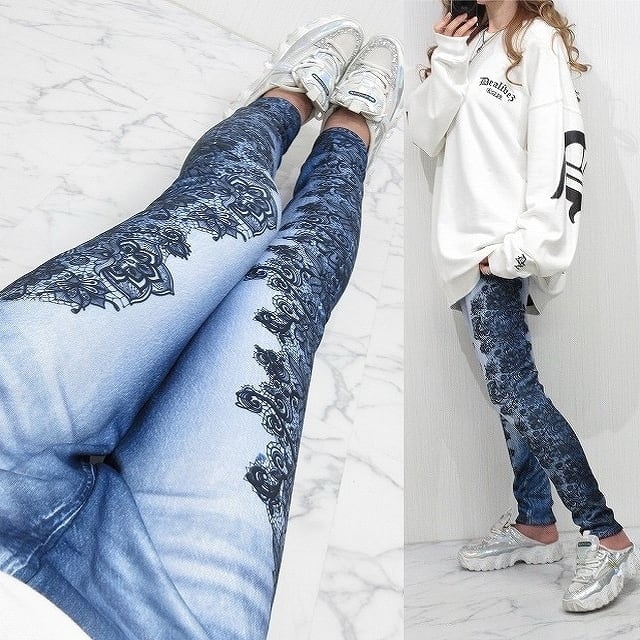 リアルツリー加工のリアルデニム柄スキニーレギンス☆