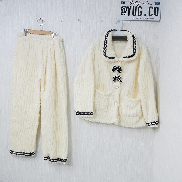 【SET UP】エンボス もこもこシープボア 暖か Tops&パンツ上下SET ルームウェア 部屋着