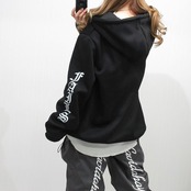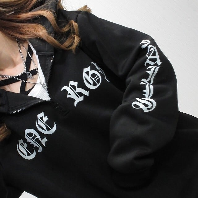 FrontハーフZIP開閉OK Frontロゴ 袖ロゴ BIGパーカー