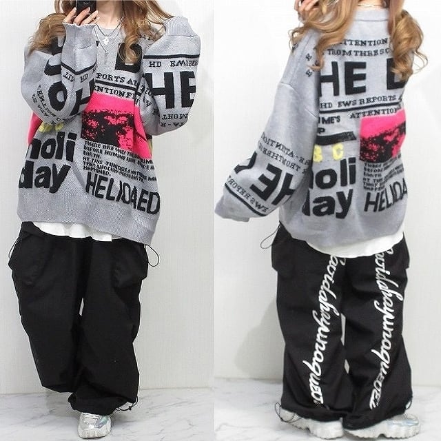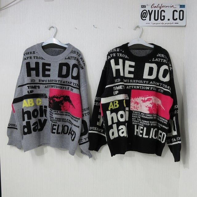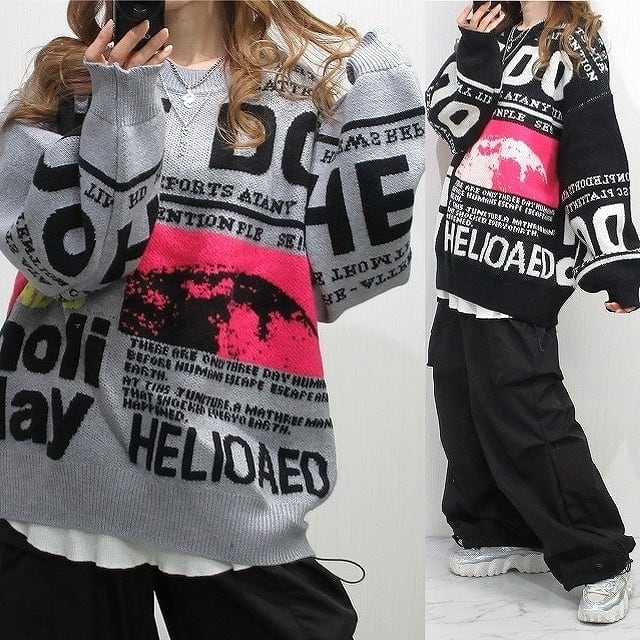 ポイントカラーがオシャレな総柄ニット!どこからみてもオシャレすぎるBIGニット♪