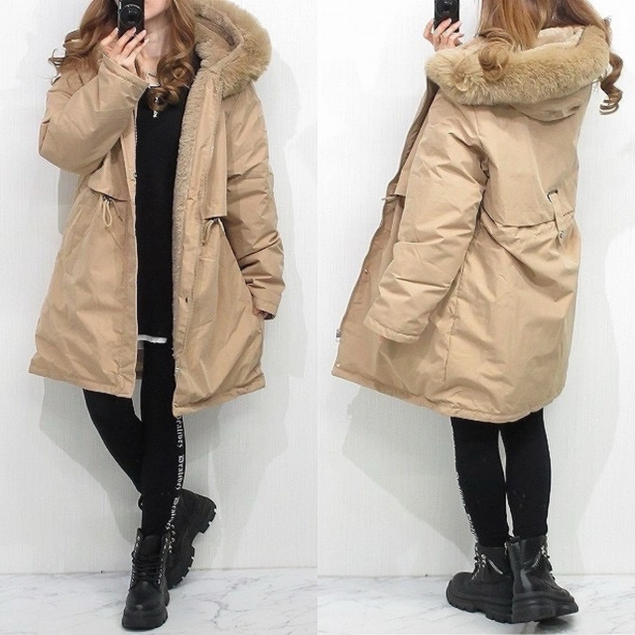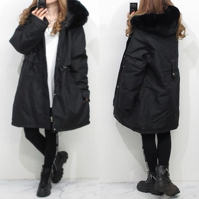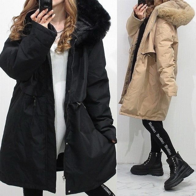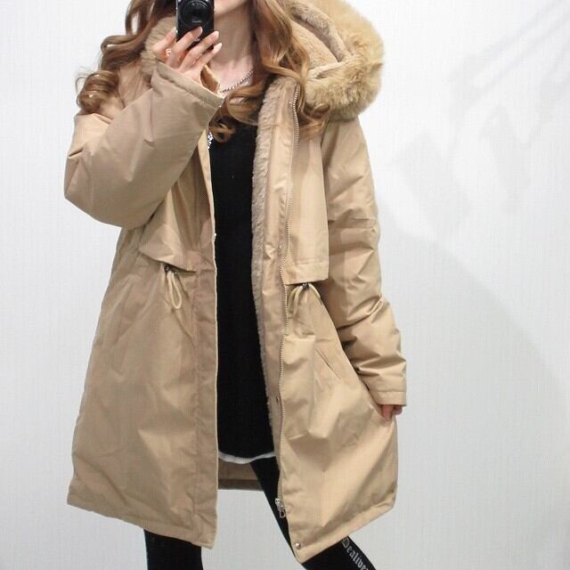 BIGフードにボリュームな光沢上質なフェイクファー◎(ファーは取り外し可能)