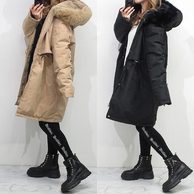 ゴージャスファー N3B モッズコート BIGフードファー付 裏地ファー 暖か 中綿 ジャケット コート