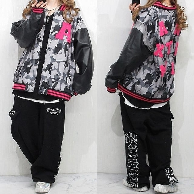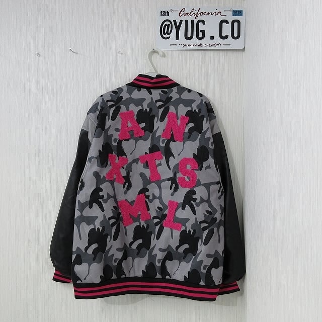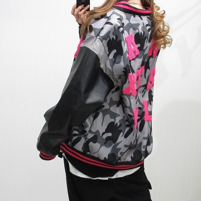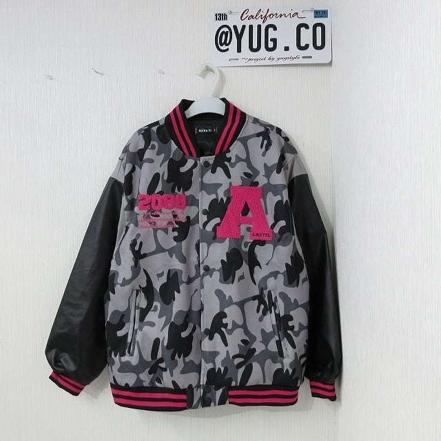 カモフラ 迷彩 ALLサガラ刺繍&刺繍 ワッペン スウェード 袖切替 スタジャン ブルゾン