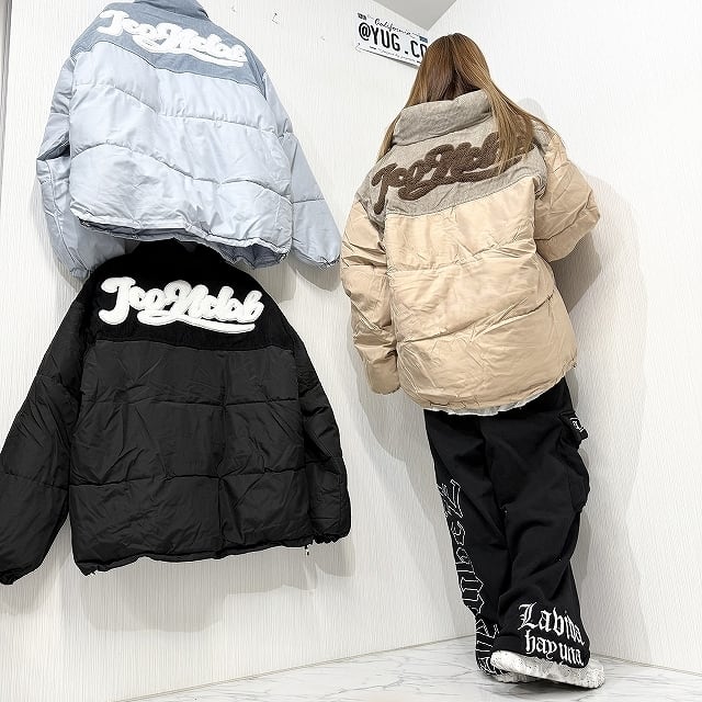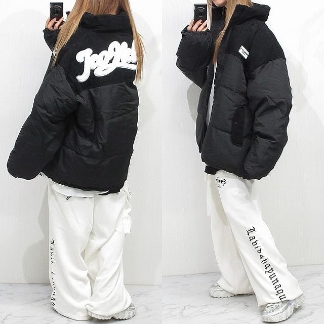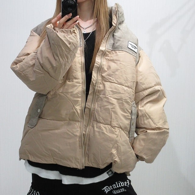 Back相良刺繍ロゴ&コーデュロイ切替シャカシャカ生地でデザインがオシャレすぎる中綿フェイクダウンジャケット☆