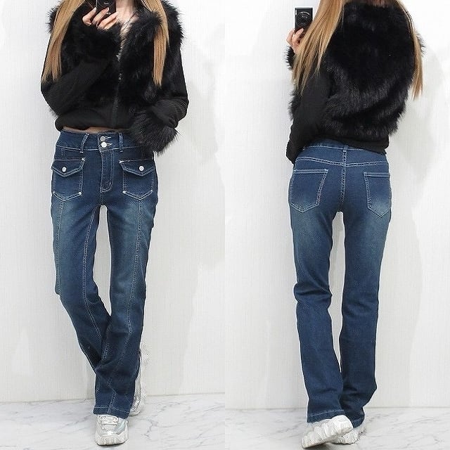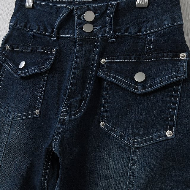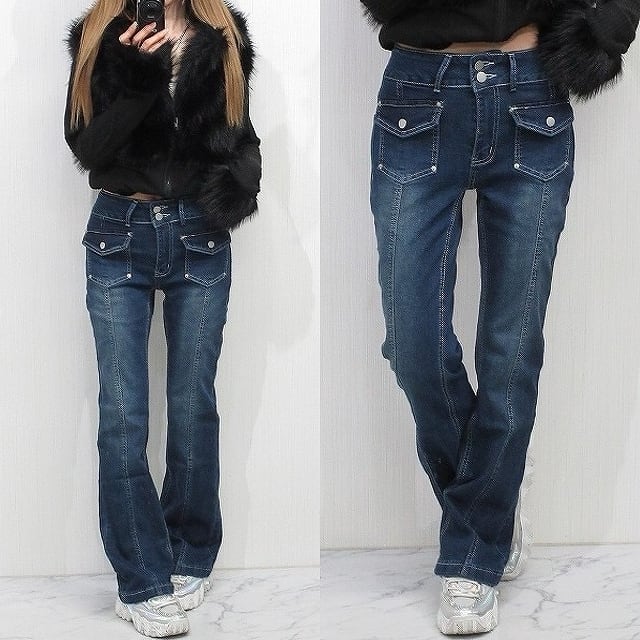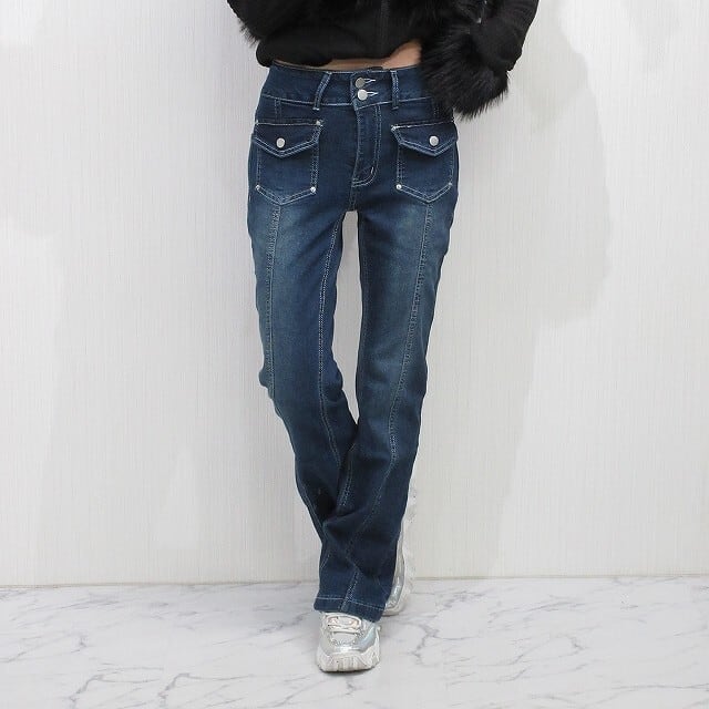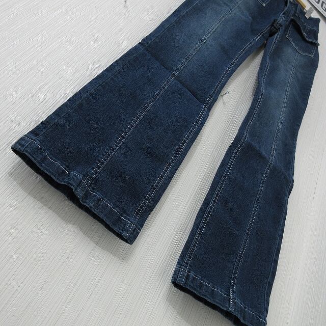 ステッチ ポケットデザイン 美脚脚長 ストレッチ ベルボトム デニム