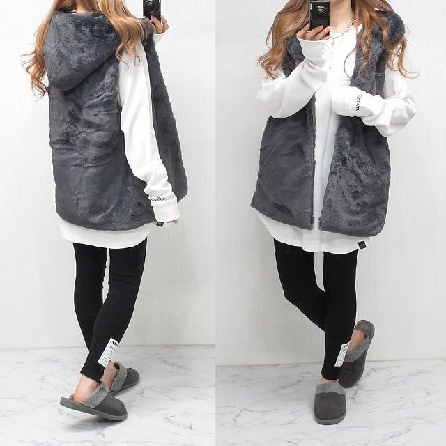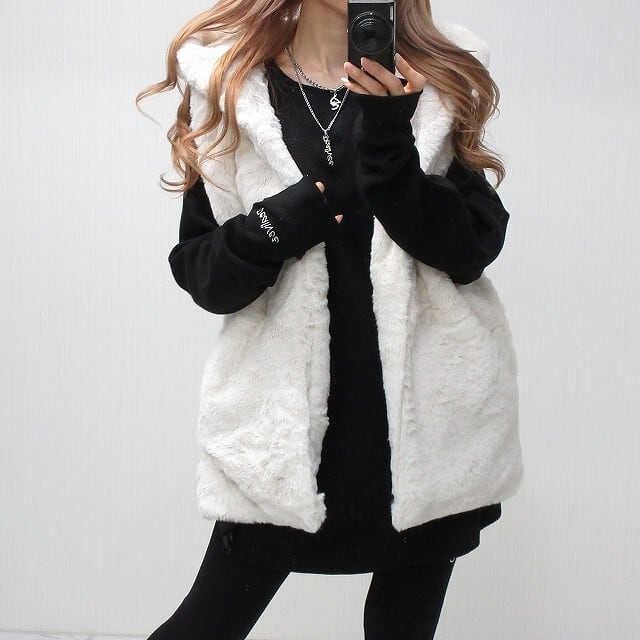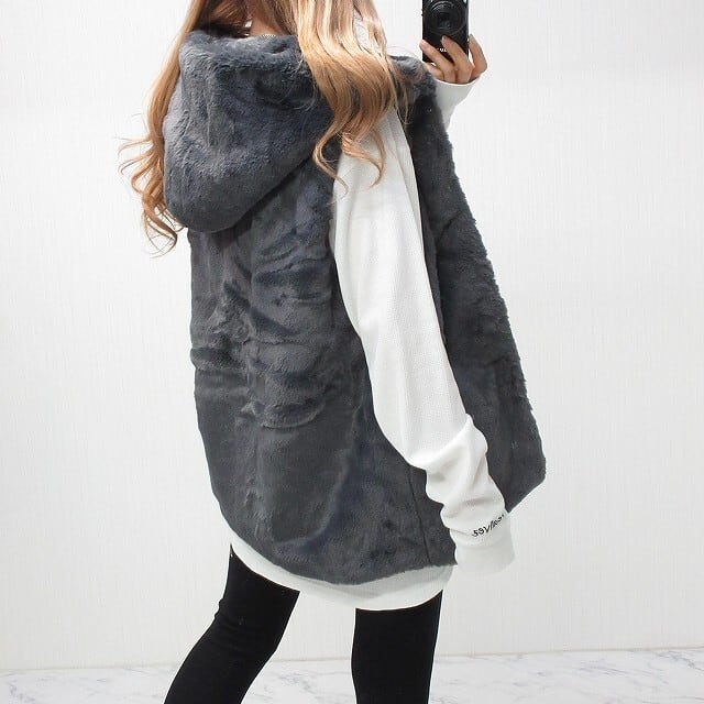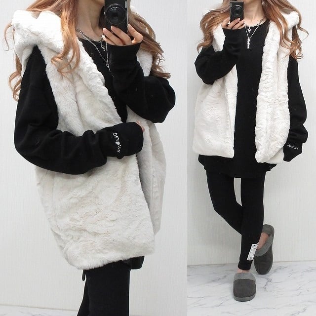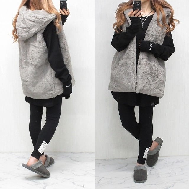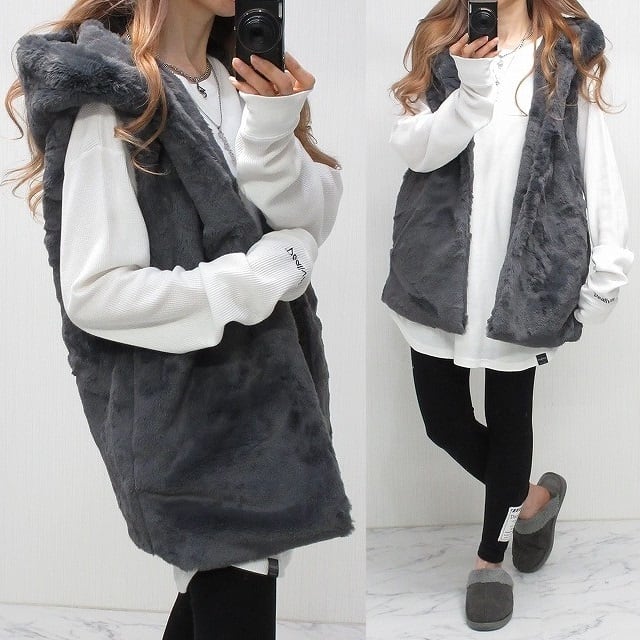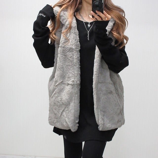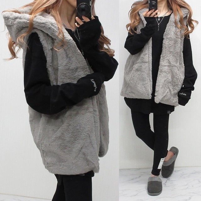 ボリュームファーベスト さらさらファー BIGフード付き ポケット付 オーバーサイズ