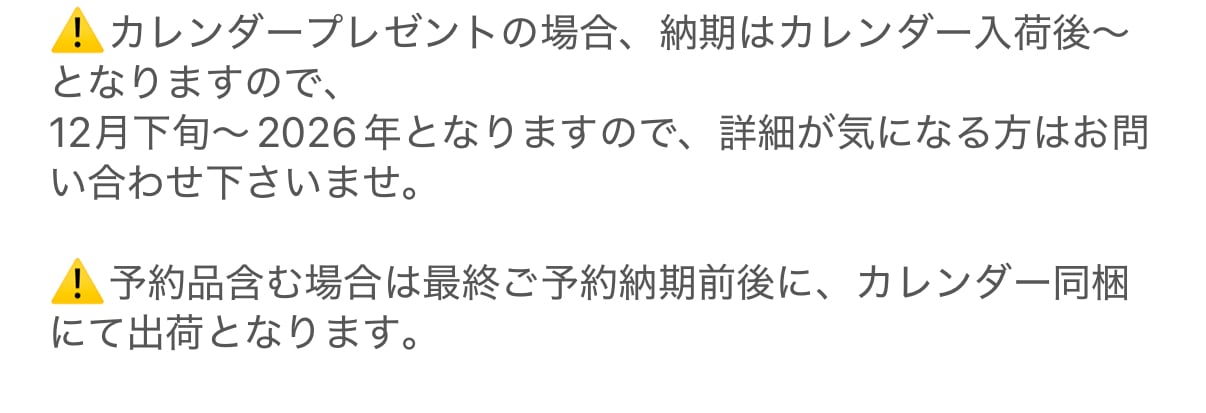 ⚠️カレンダープレゼントの場合、納期はカレンダー入荷後~となりますので、