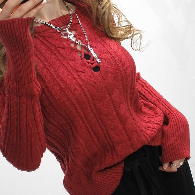 編み上げFront胸元クロスあきでオシャレ感抜群のニット⭐︎