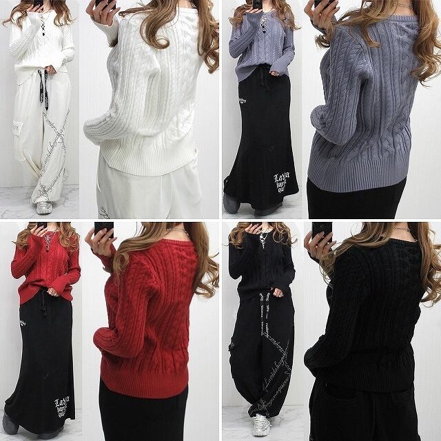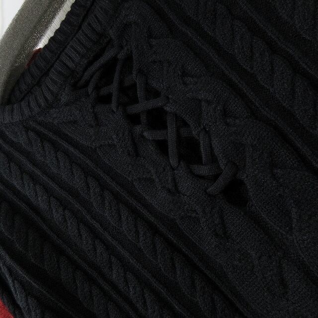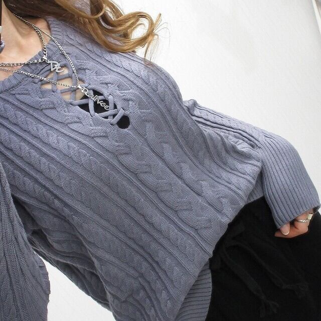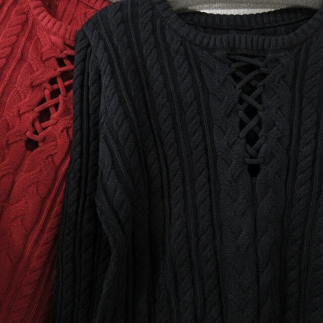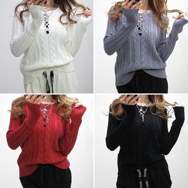 女子力UP! 胸元あき 編み上げ Frontクロス ケーブル編み ニット