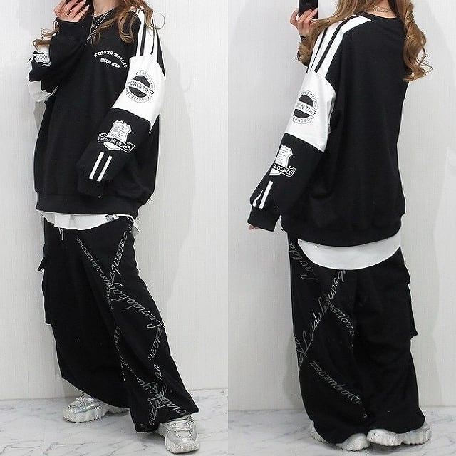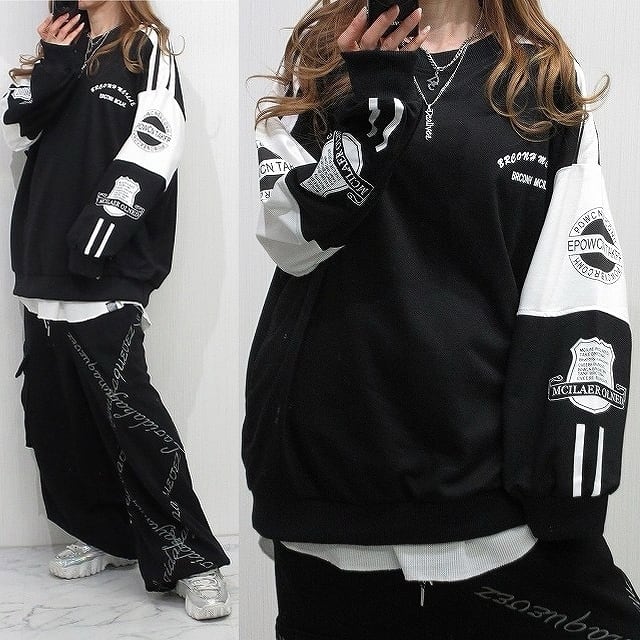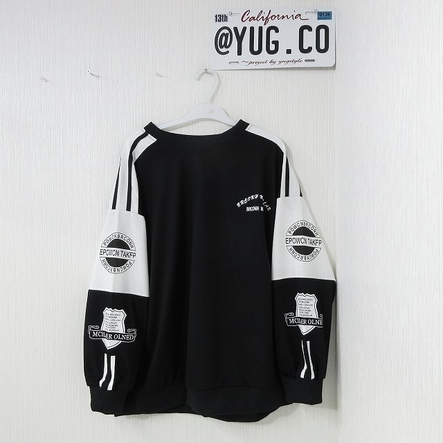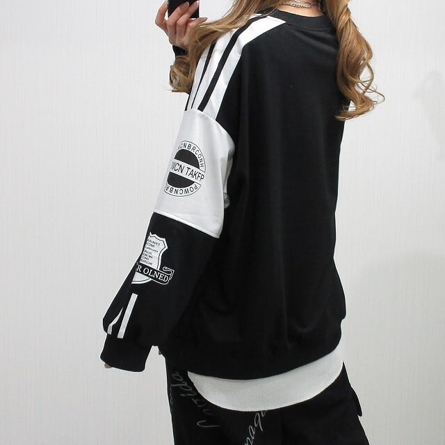 袖エンブレム ライン ロゴ 薄手トレーナー インポート