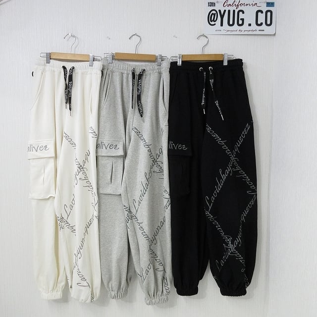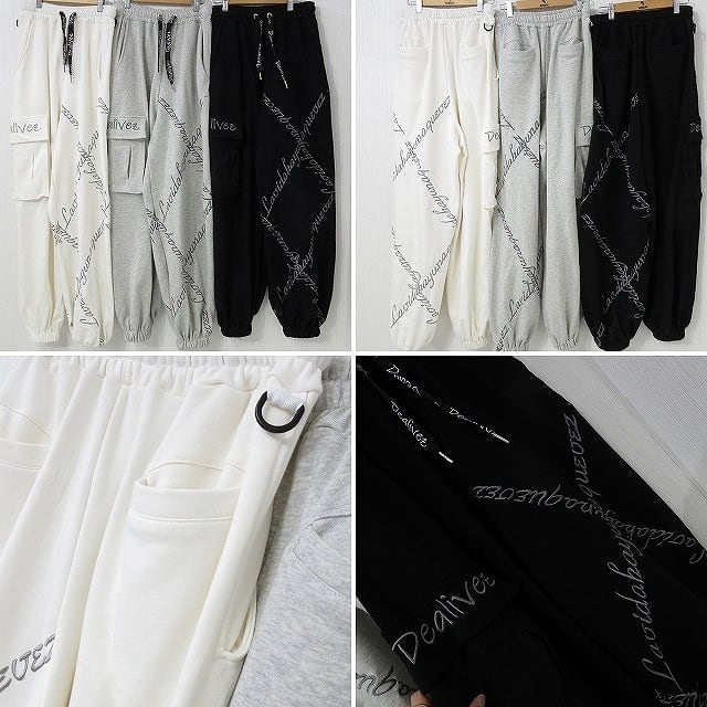 【Dealivez】クロスチェーン ALL刺繍 ロゴ 立体カーゴポケット付 Wide ワイド スウェットパンツ BOYS