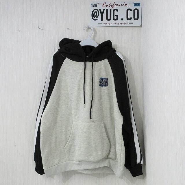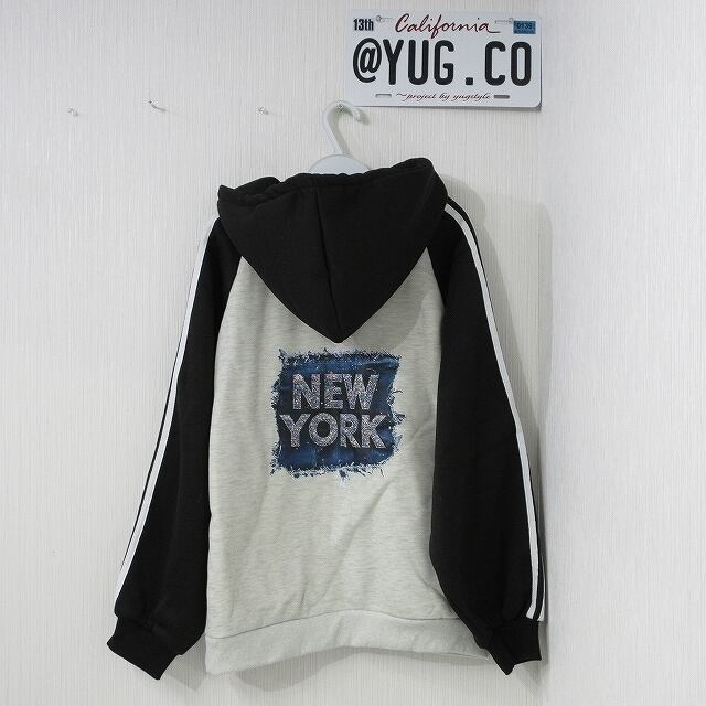 NYデニムモチーフロゴ 極厚 極暖 配色切替 バックロゴ BIGパーカー