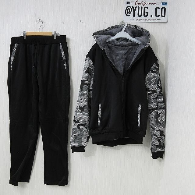 【SET UP】裏ALLファーボア 暖か 迷彩カモフラ パーカー&ジョガーパンツ 上下セットアップ