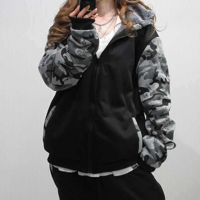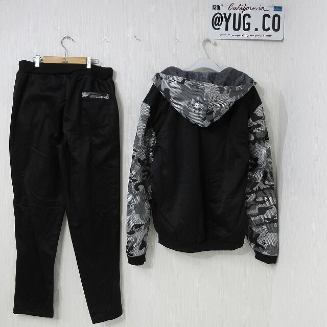 迷彩カモフラ切替パーカー&ジョガーパンツ☆上下セット♪