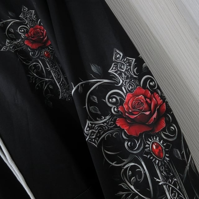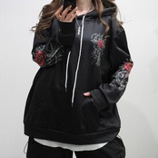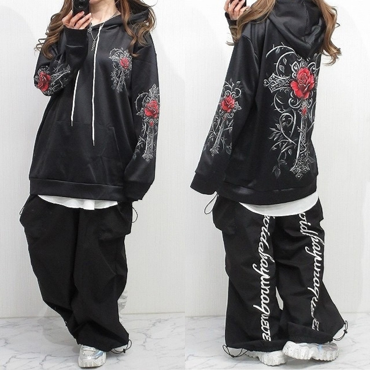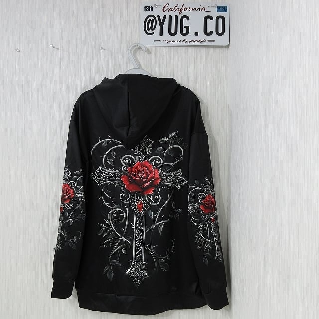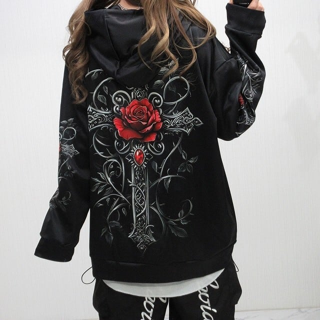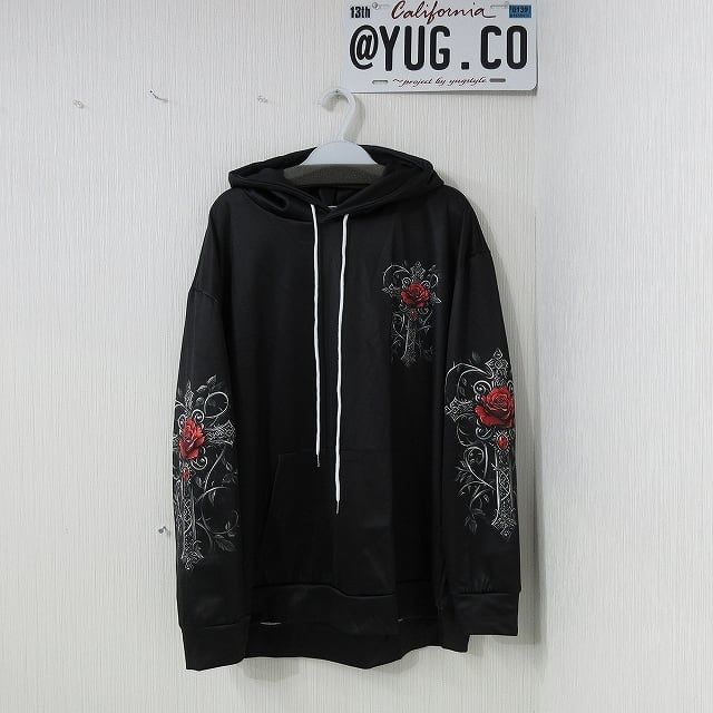 タトゥ ローズ 薔薇柄 クロス バクプリ BIGパーカー