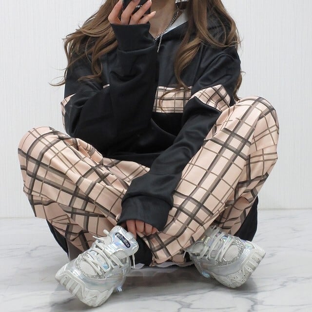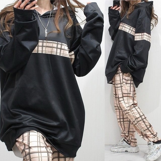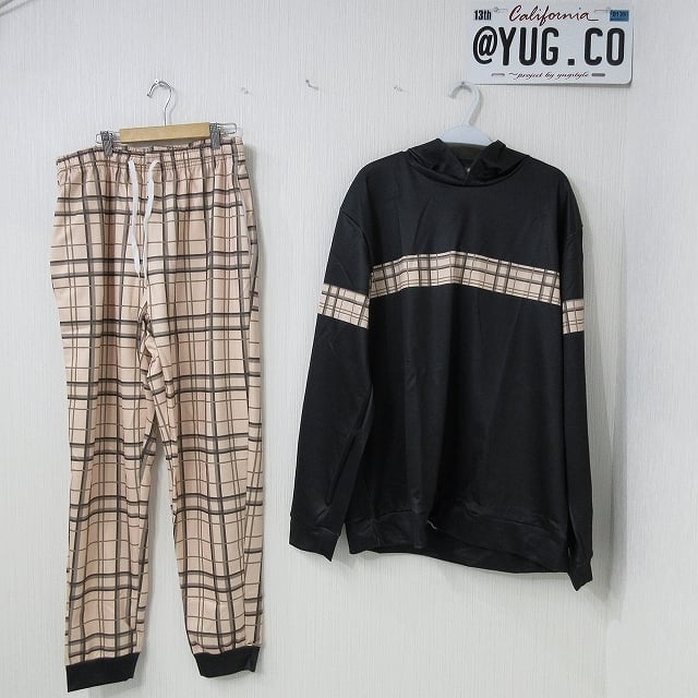 【SET UP】タータンチェック柄 パーカー&ジョガーパンツ 上下セットアップ