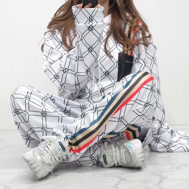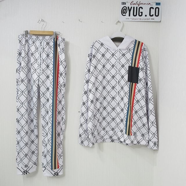 【SET UP】ロゴ総柄 パーカー&ジョガーパンツ 上下セットアップ ホワイト
