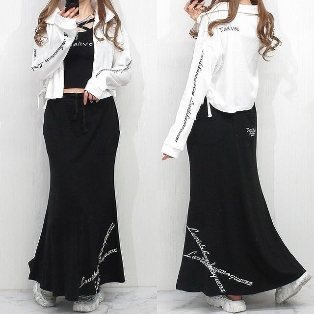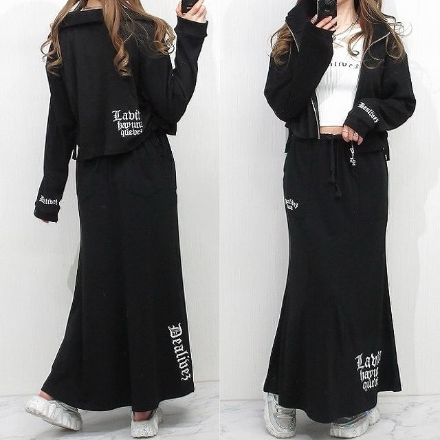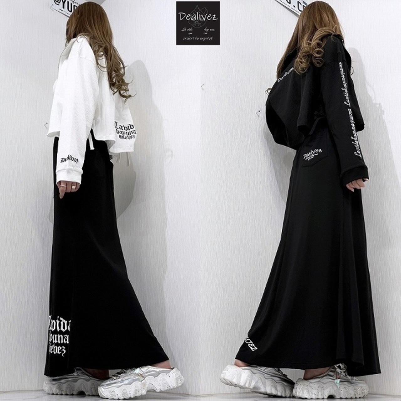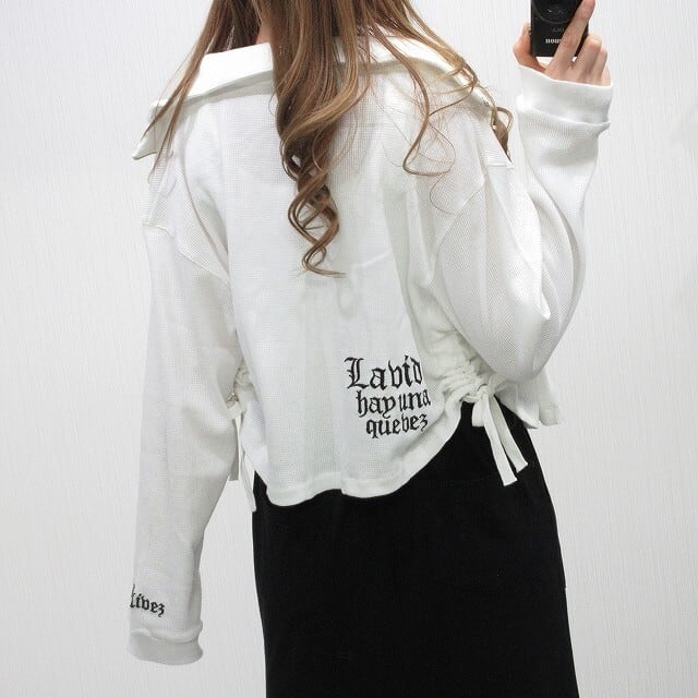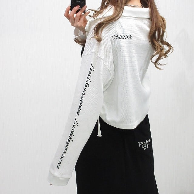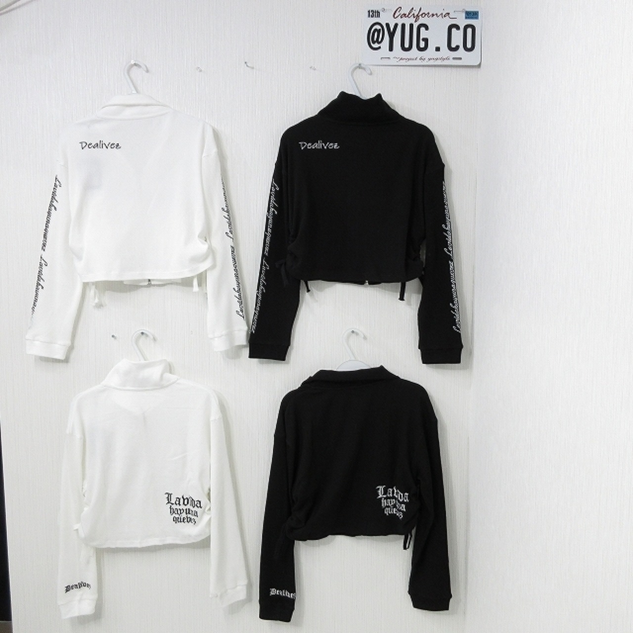 【Dealivez】ハイネックZip ワッフル地 Sideシャーリング ALL刺繍 ZIP ジャケ JK チャーム付 スタンドBIG襟
