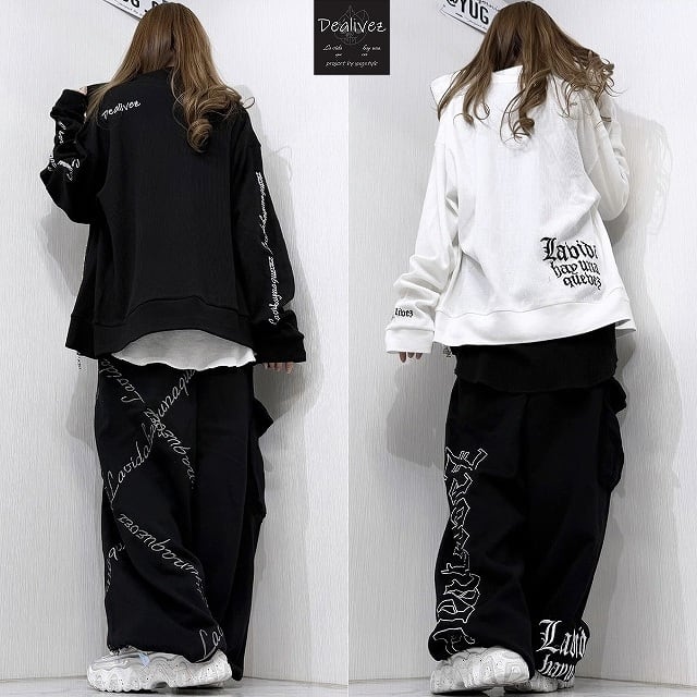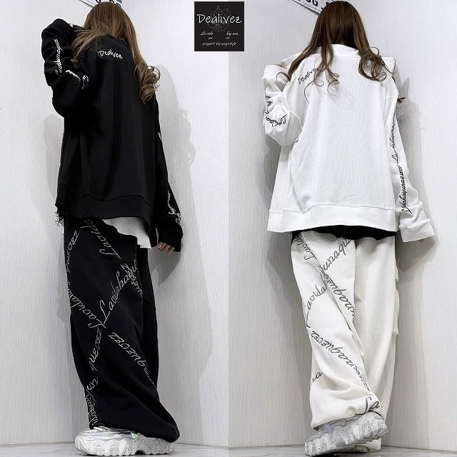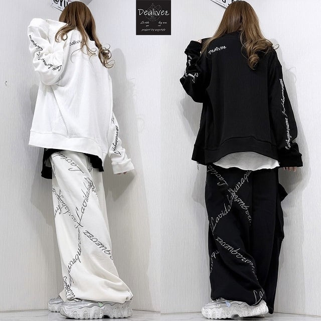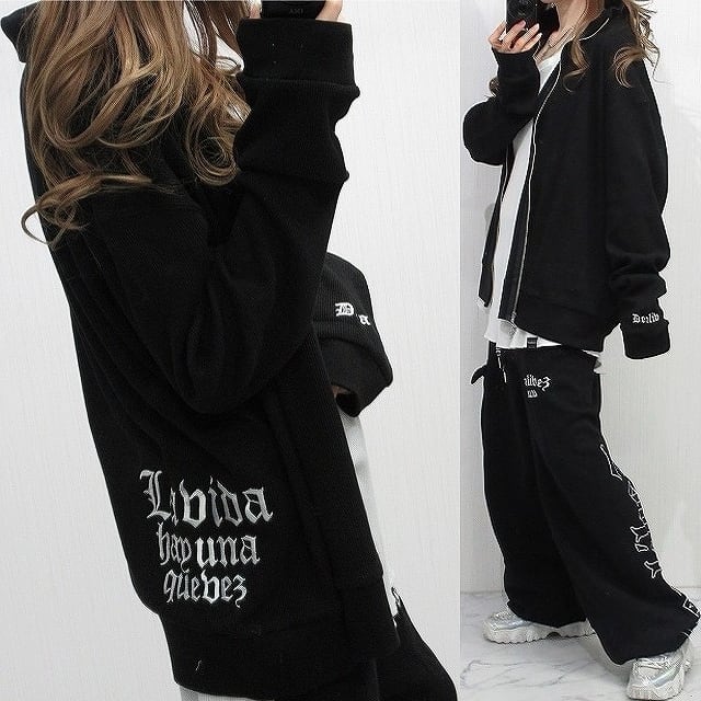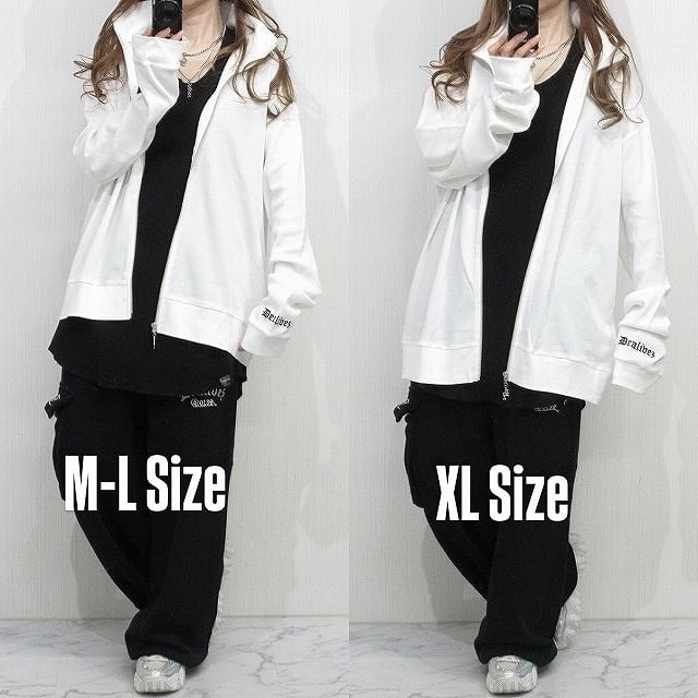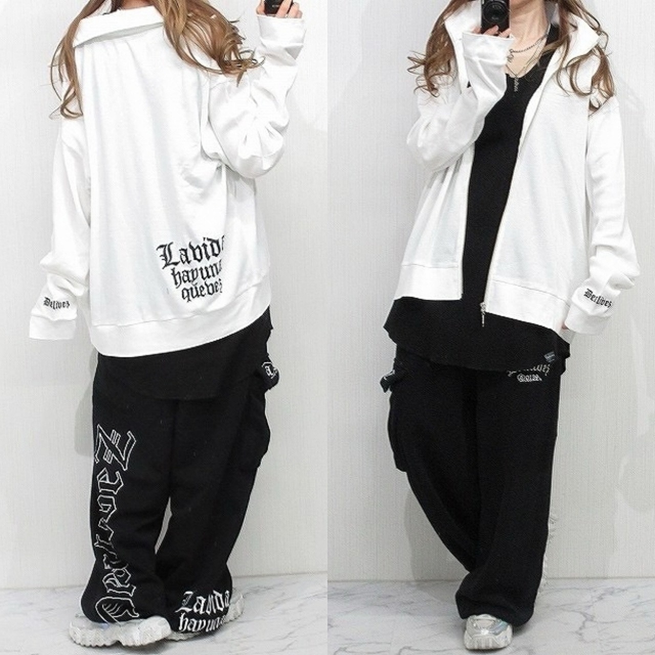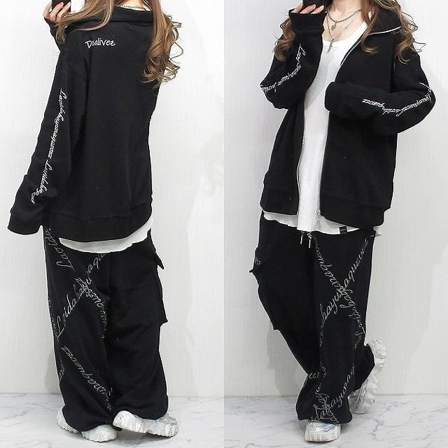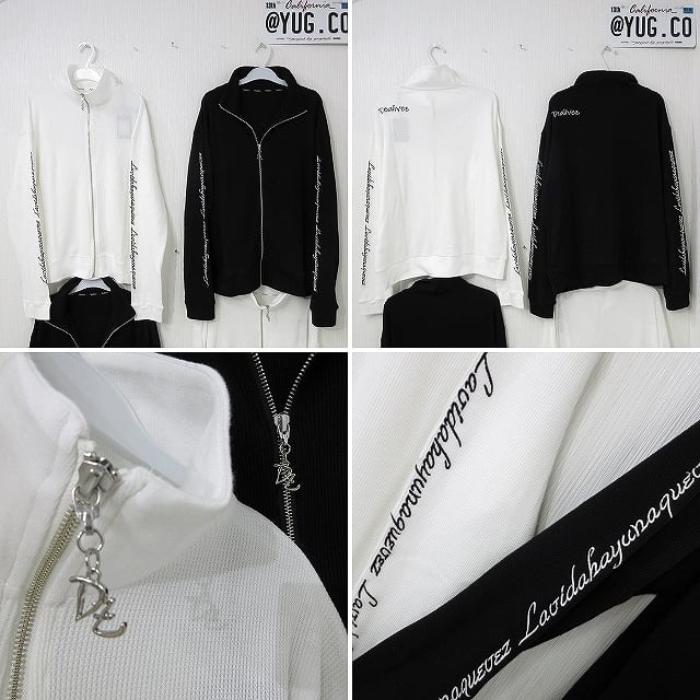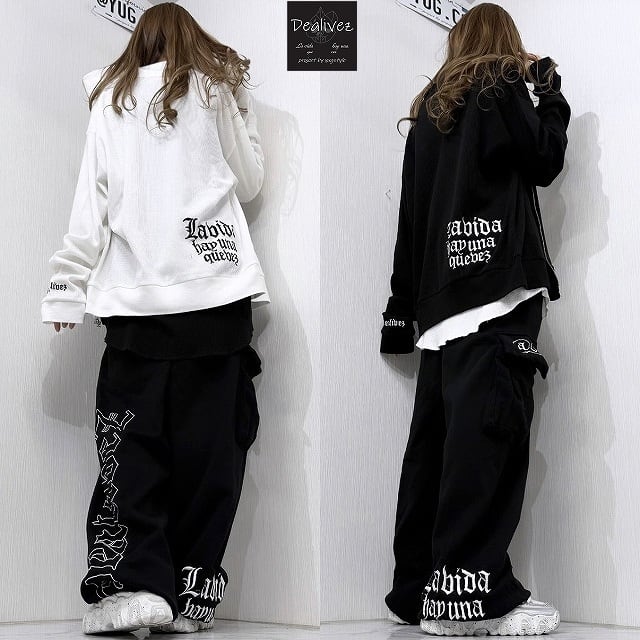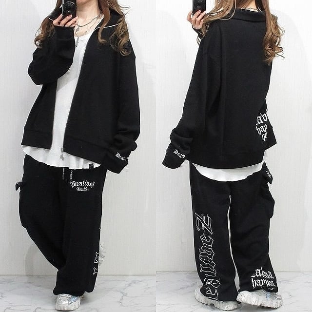 【Dealivez】ハイネックZip ワッフル地 ALL刺繍 ZIP ジャケ JK チャーム付 スタンドBIG襟 BIGシルエット