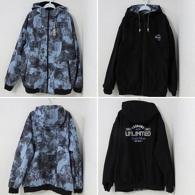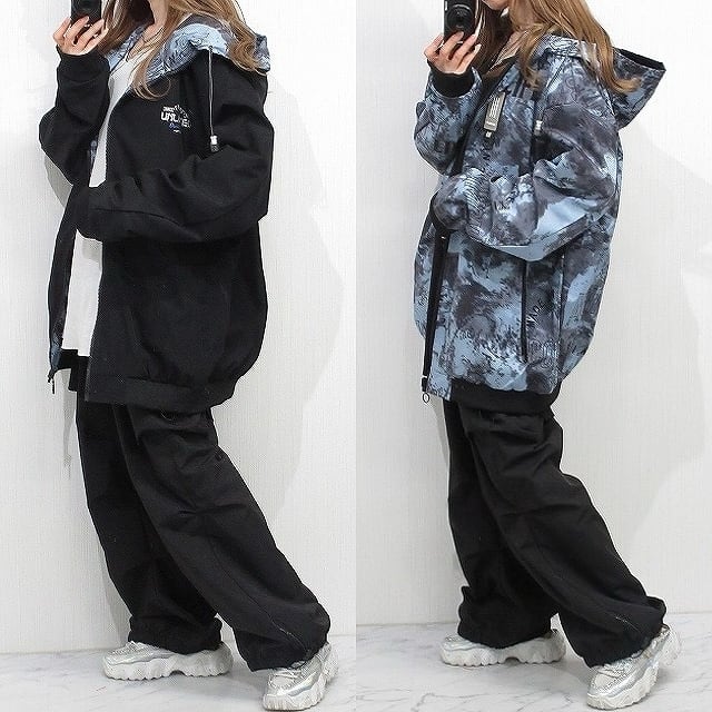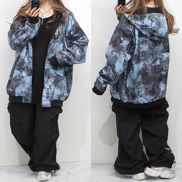 リバーシブル 斑染めタイダイ&ロゴ 2WAY ハイネックZIP マウンテンジャケット ブルゾン