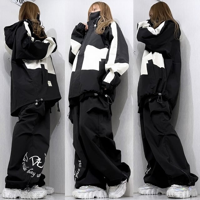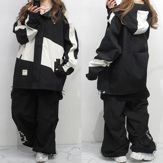 バイカラー マウンテンジャケット 配色 ハイネックZIPフード トラックジャケット ブルゾン オーバーサイズ