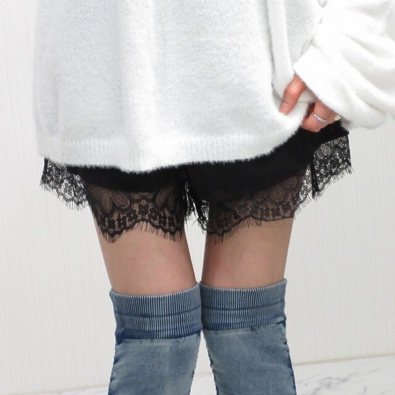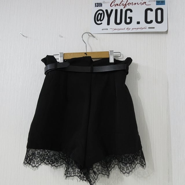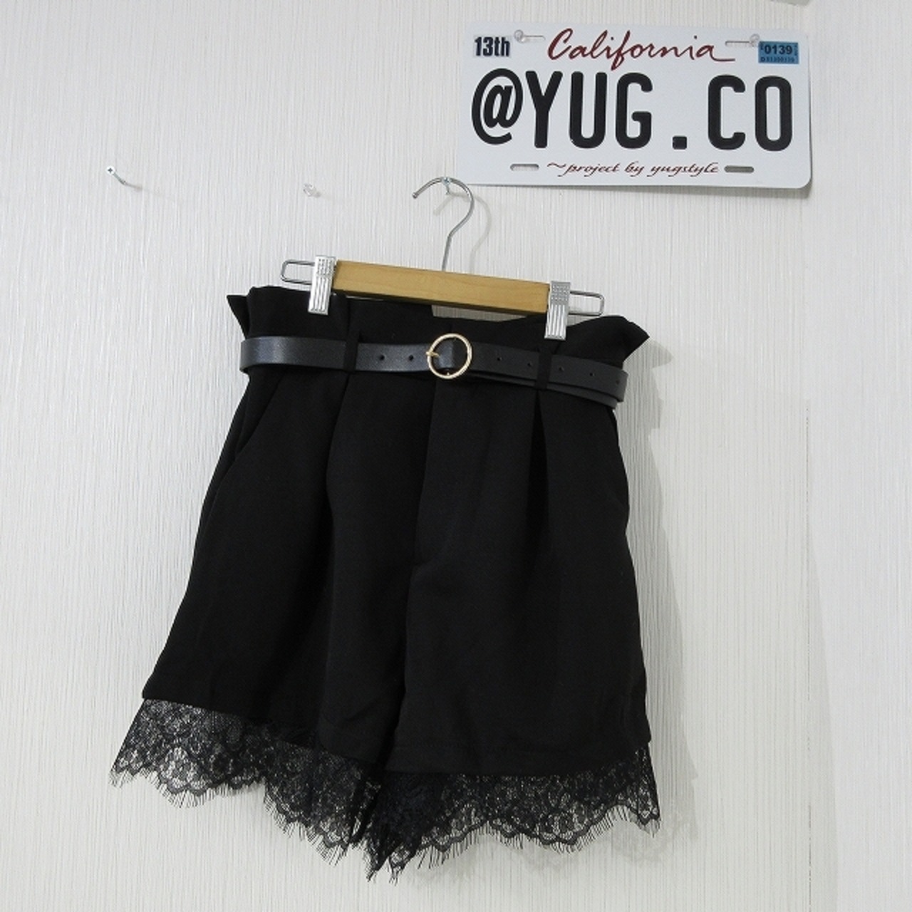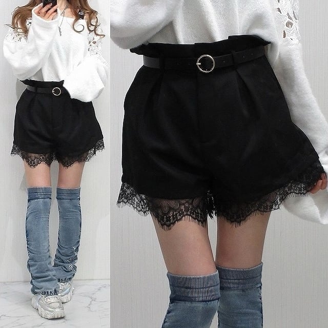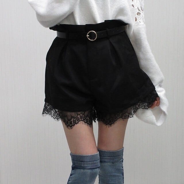 裾レース切替 ショートパンツ ベルト付き 重ね着にもOK 美脚&小尻効果◎