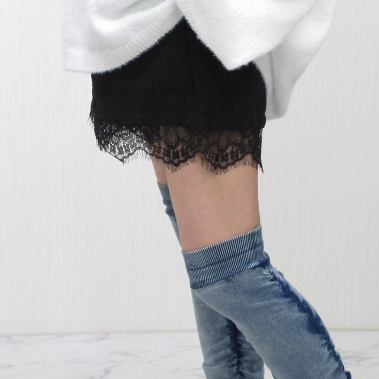 裾がレースなのでダボっとしたニットやパーカー、ワンピと合わせてレイヤードコーデも楽しめます!