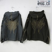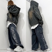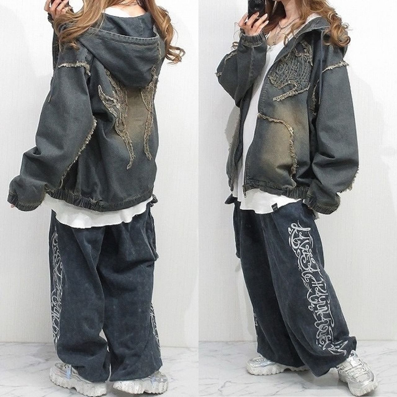 デニム 特殊加工ビンテージ Y2K Wzip パーカー ワッペン刺繍 デニムジャケット Gジャン ユニセックス