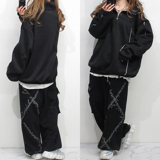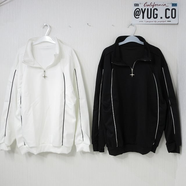 ハイネックZip 2Way zipチャーム付き パイピング 配色 プルオーバー トレーナー
