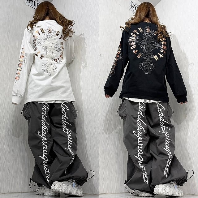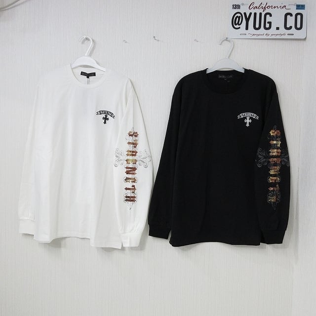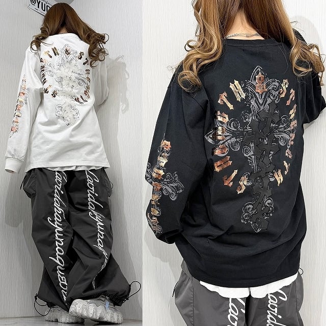 クロス刺繍&ワッペン 金箔 バクプリ&袖 ロンT