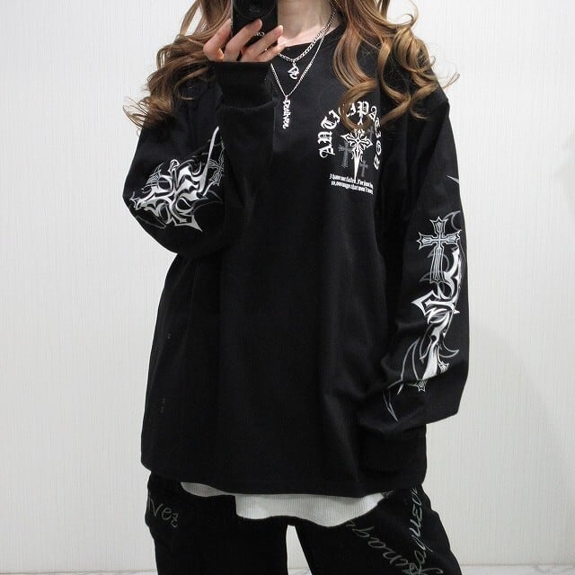 ストリート クロス十字架 トライバル バクプリ ロンT