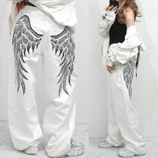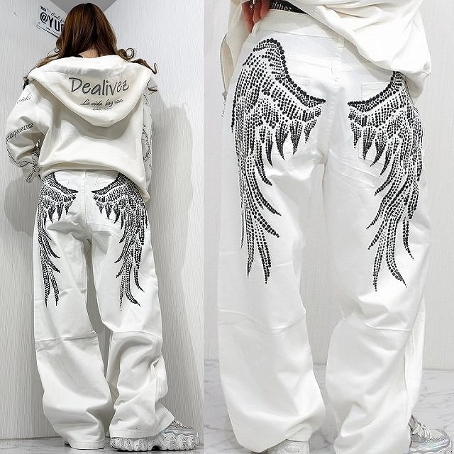 Backフェザー 翼モチーフ ワイドデニム BOYSデニム デニムパンツ