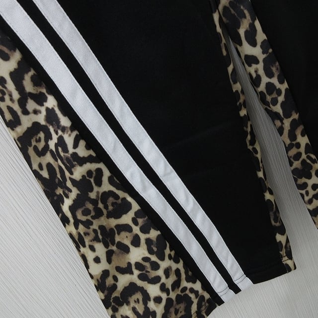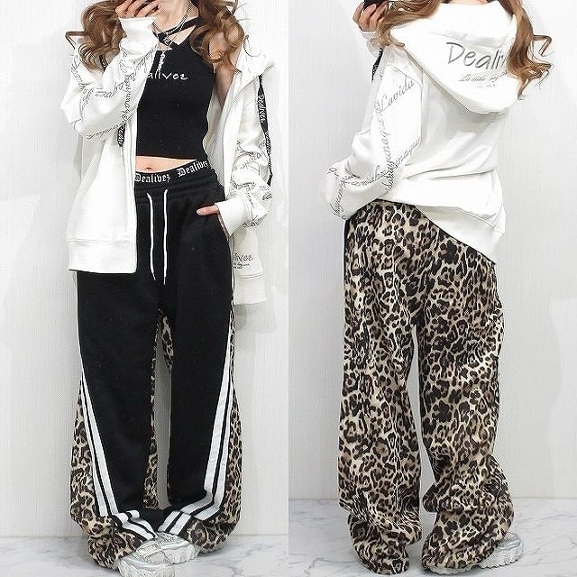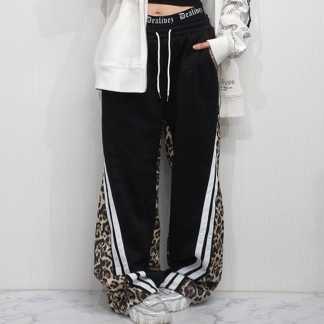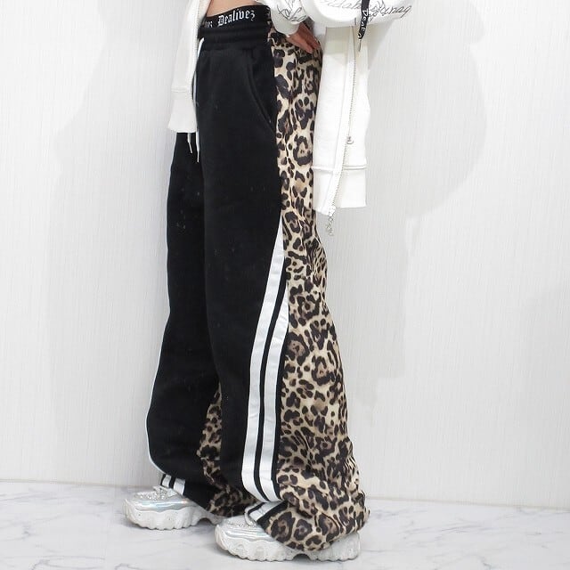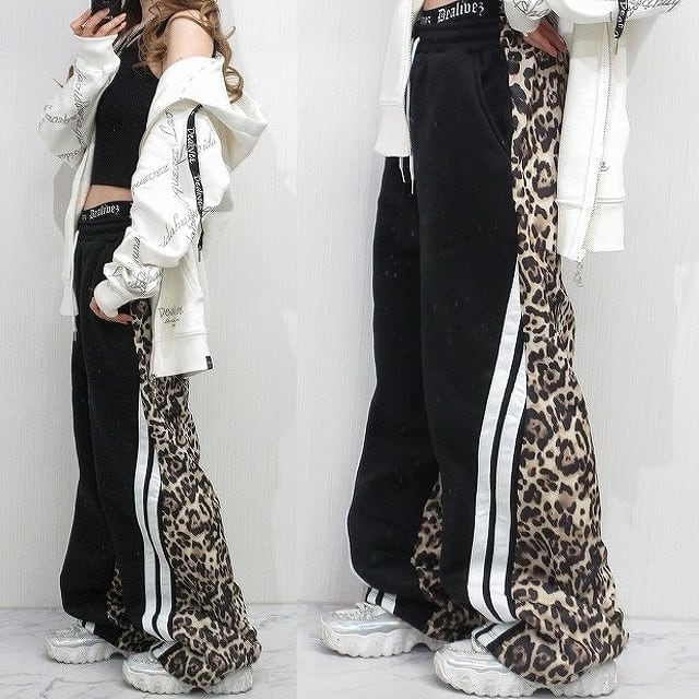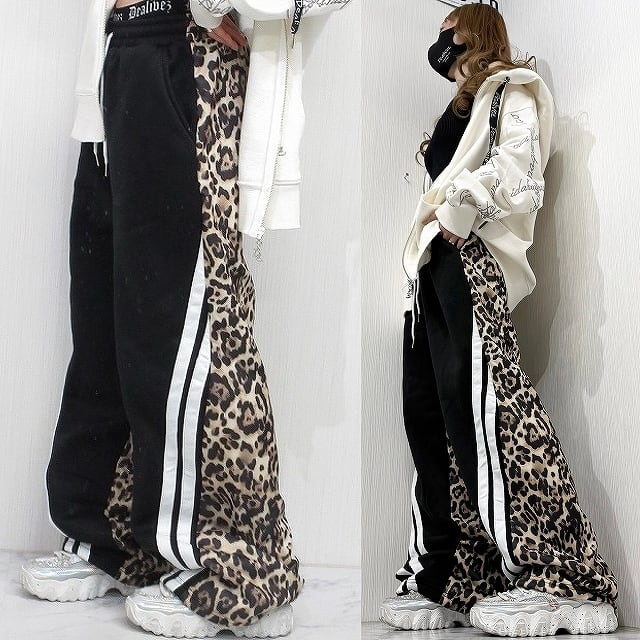 レオパ柄 豹柄 配色切り替え スウェットパンツ Wide ワイドパンツ