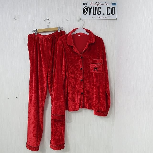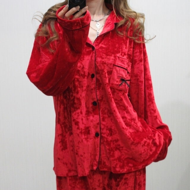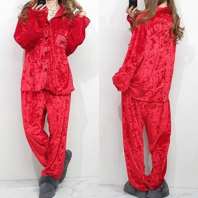 【SET UP】光沢ベロア 上品 Tops&パンツ上下SET ルームウェア 部屋着 パジャマ
