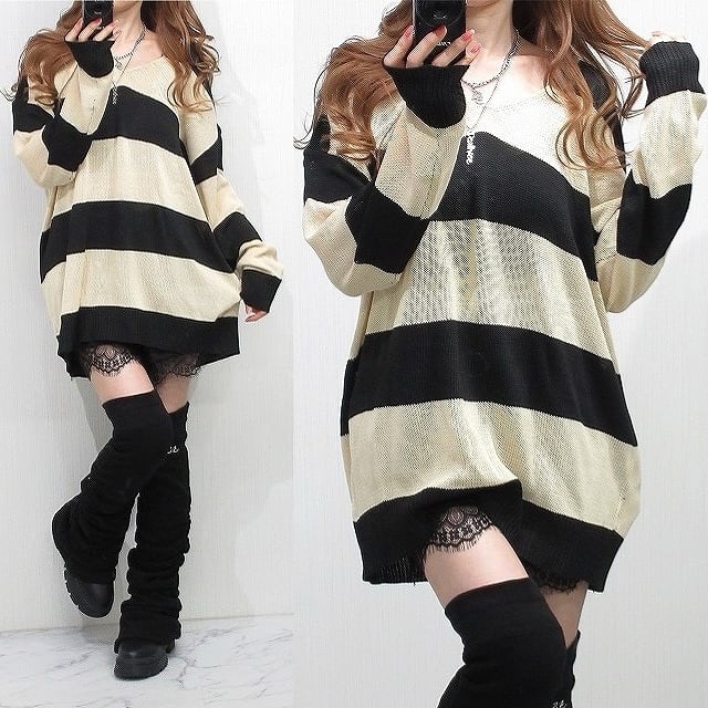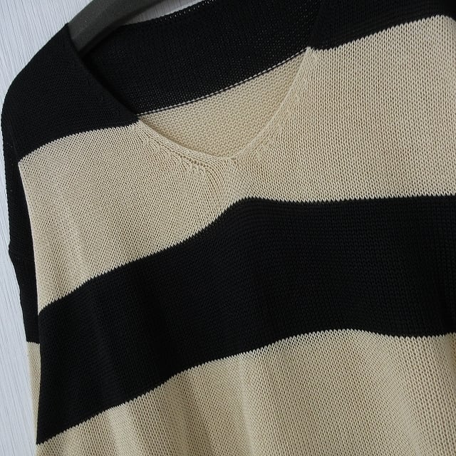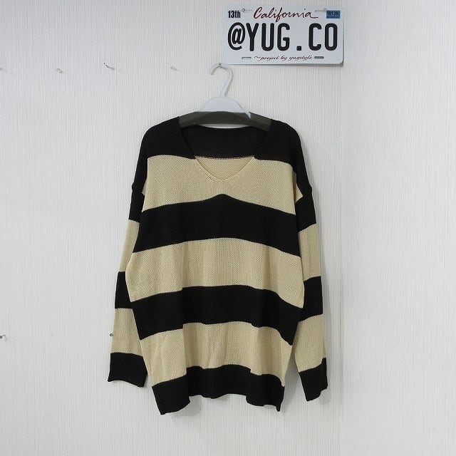 Vネック バイカラー ボーダー 配色 ゆるかわ ニット チュニック