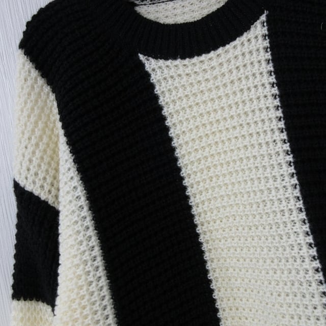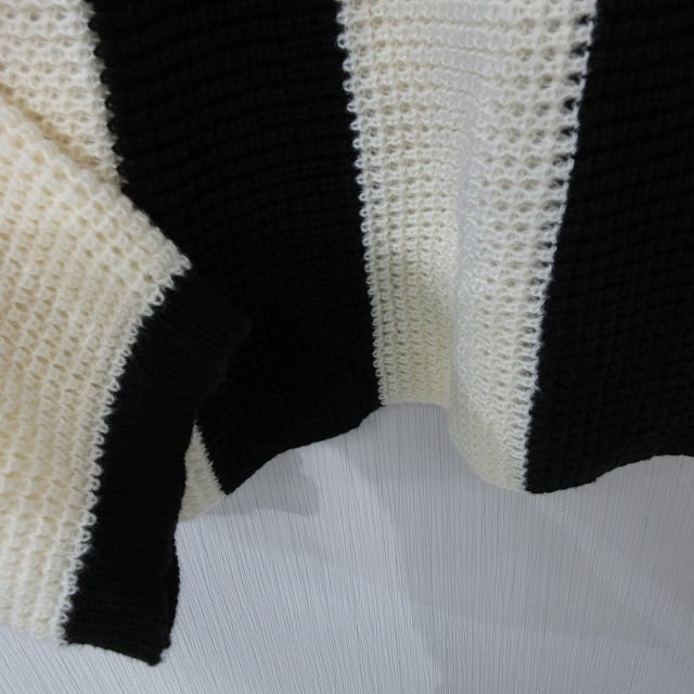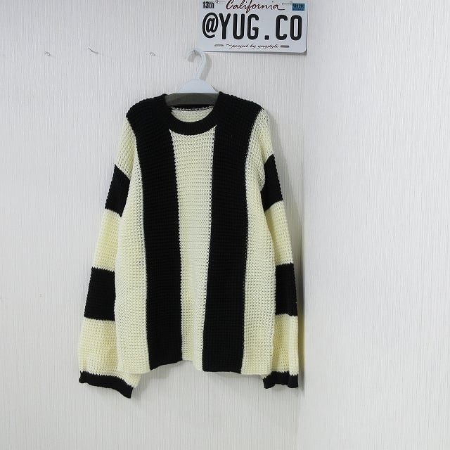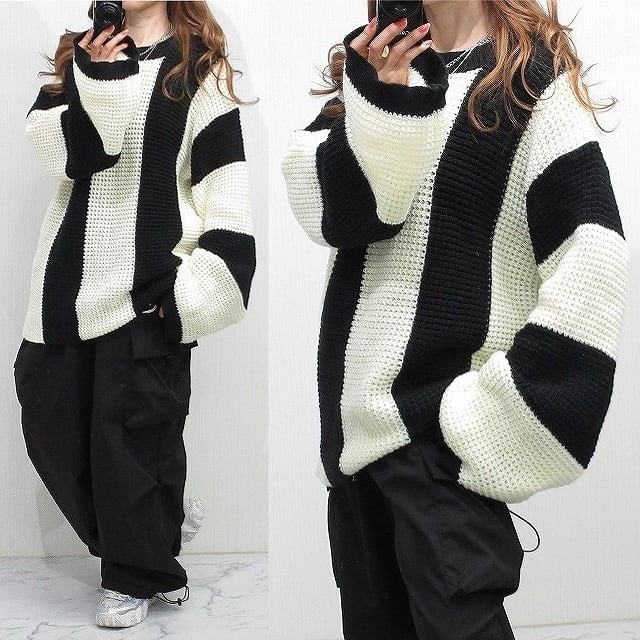 ストライプ 配色切替 ざっくり編み オーバーニット