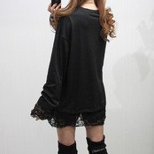クロシェ刺繍の裾袖レース切替がエレガントで上品なオシャレチュニック・ロンT♪