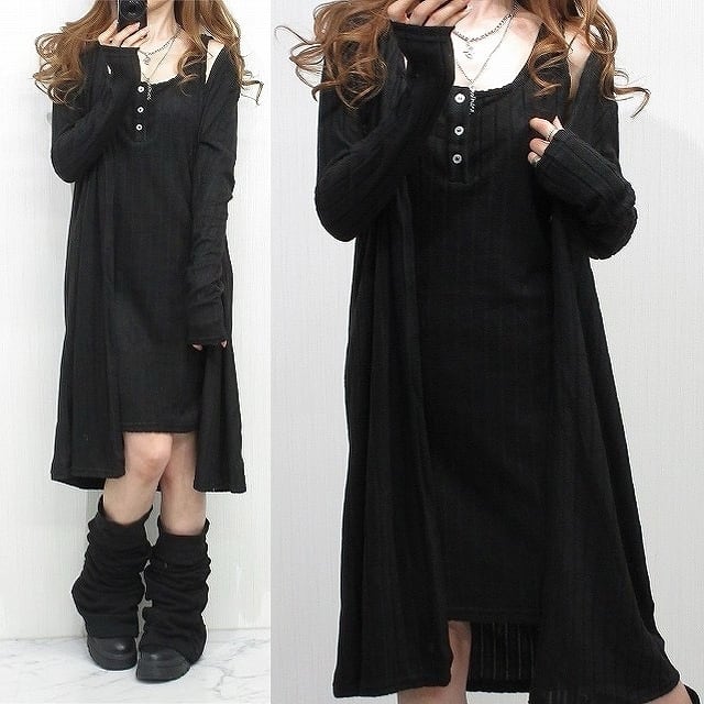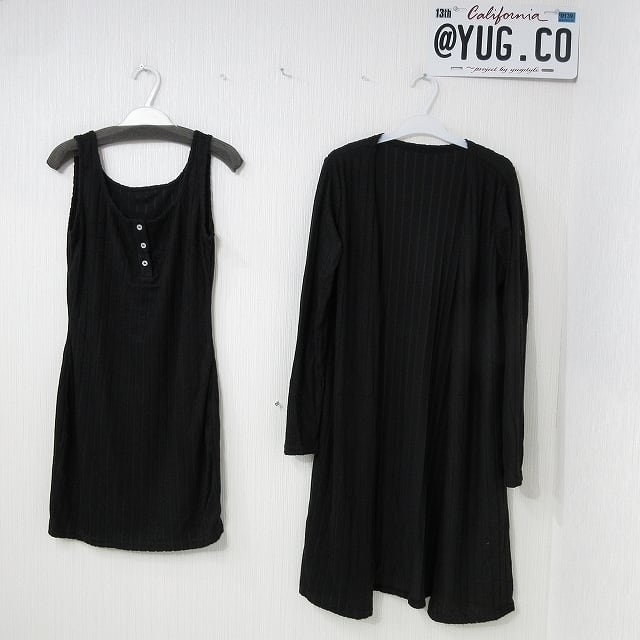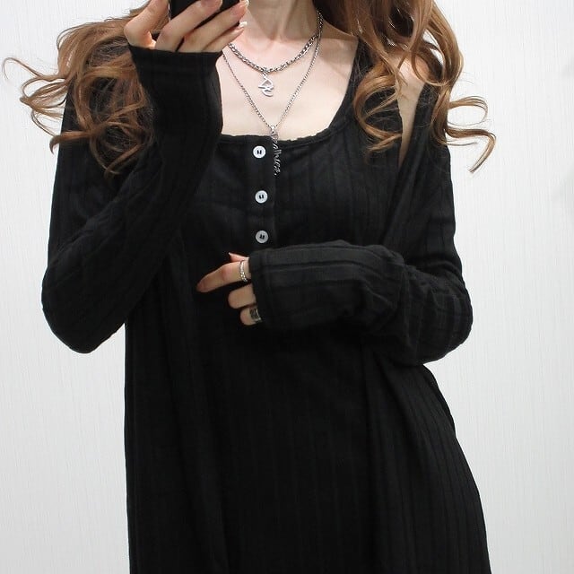【2点セットアップ】Frontハーフ釦開閉OK リブワンピ&リブカーディガン コーデ