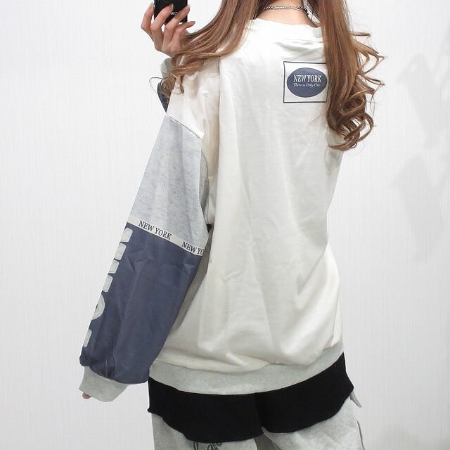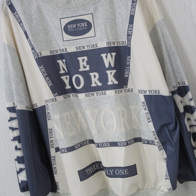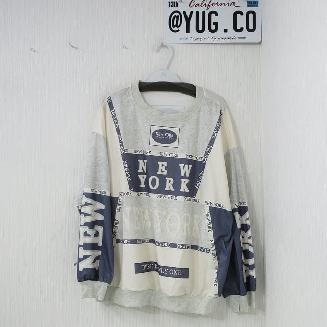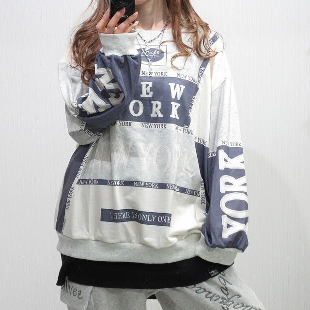 NYロゴ 配色切替 総柄 カジュアル BIGトレーナー